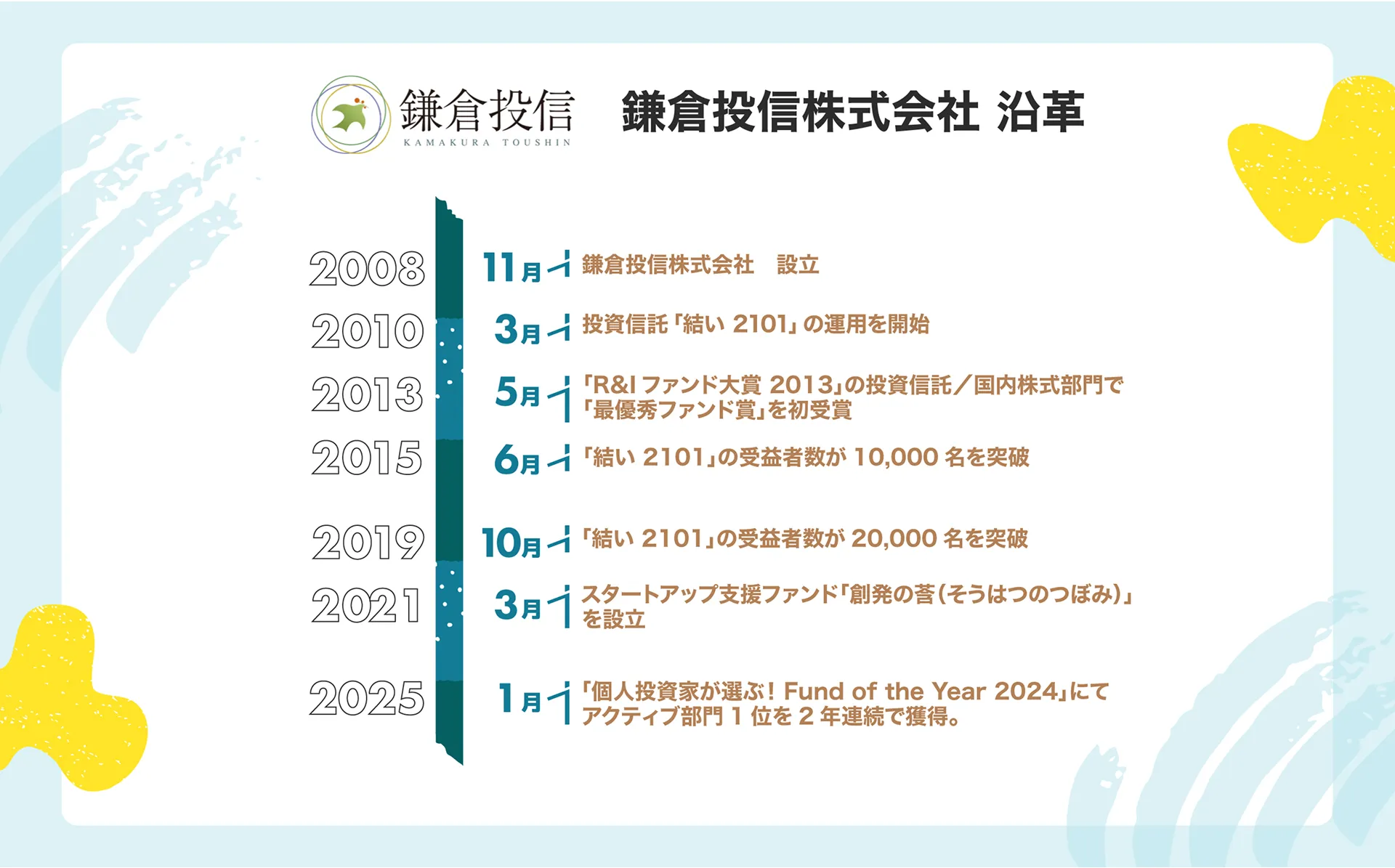 日本全体から「いい会社」を見つけ出し、投資家とともに支える応援団のようなユニークな立ち位置から持続可能な社会づくりを目指し、築100年の日本家屋を拠点に公募型の投資信託「結い 2101(ゆいにいいちぜろいち)」を運用・販売している。