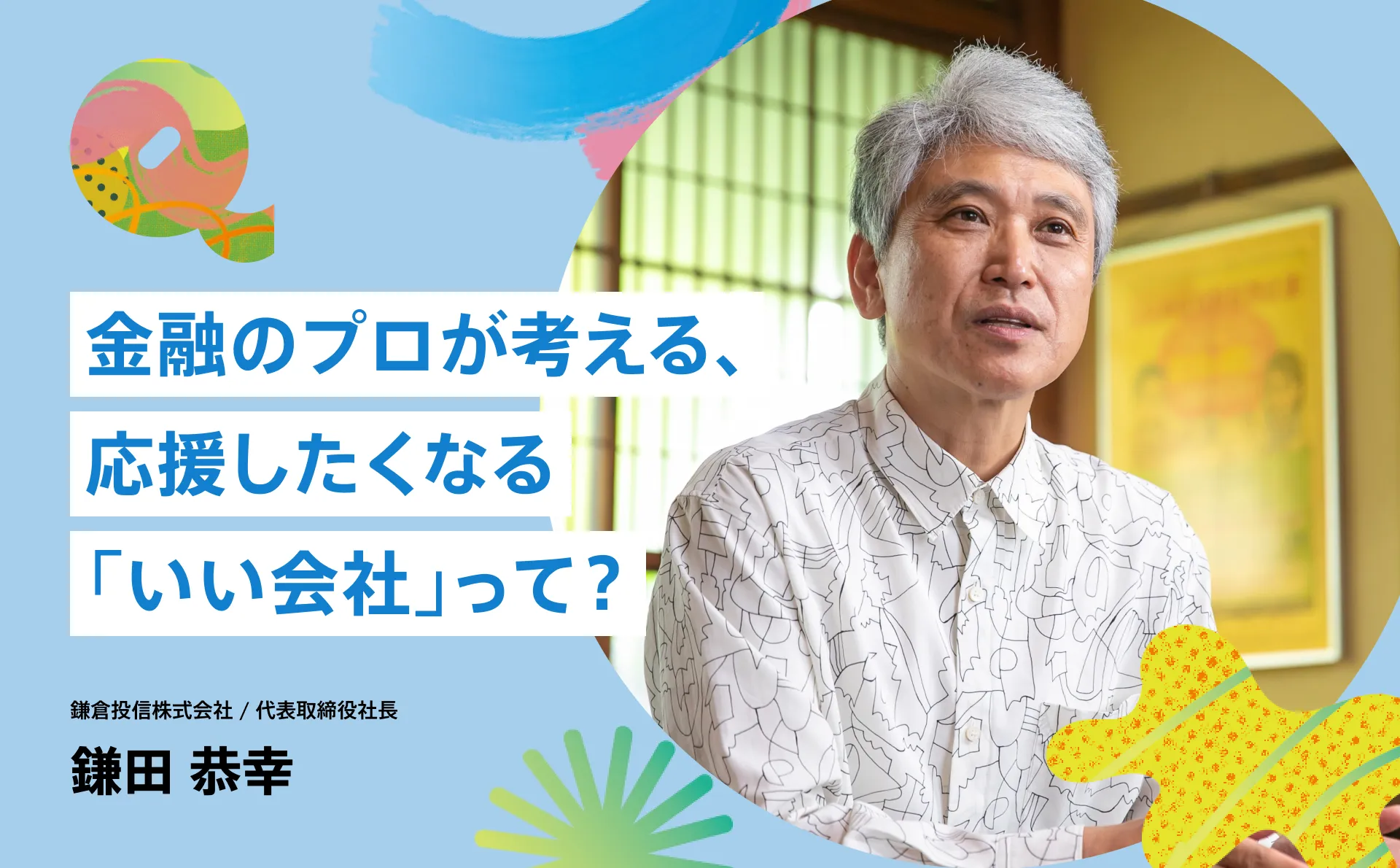 投資家一人ひとりの意識が変わり、成長する機会を生むことが社会への大きな影響力になると語るのは、鎌倉投信株式会社の代表取締役社長、鎌田恭幸さん。金融のプロでありながら、単なる利回り追求ではなく「いい会社」を見極める独自の哲学を持つ。