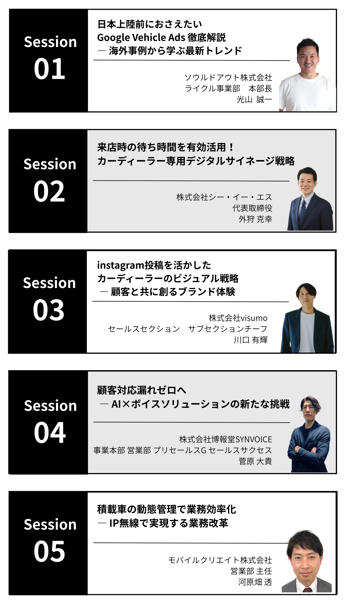 ディーラー向け導入実績も豊富で、真面目な印象ながら場を和ませる雰囲気づくりも得意です。