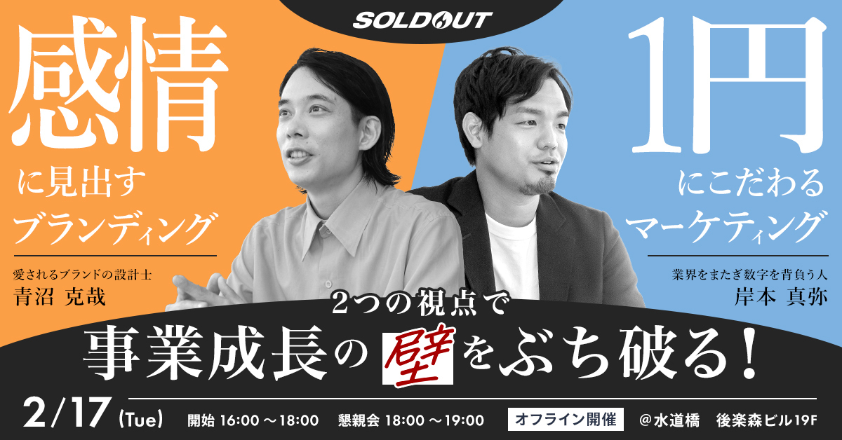 地方を含む全国の志ある中堅・中小企業の成長支援をデジタルマーケティング領域で展開するソウルドアウト株式会社(本社:東京都文京区 代表取締役社長CEO兼CCO:荒波 修、以下「ソウルドアウト」)は、2026年2月17日(火)に『「感情」に見出すブランディングと 「1円」にこだわるマーケティング、 2つの視点で事業成長の"壁"をぶち破る!』を開催いたします。